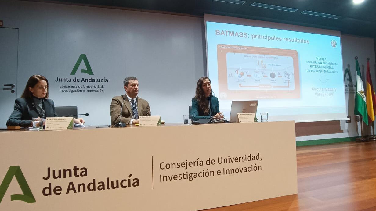On 10 December 2025, the BATMASS project was presented at the international event “Andalusia at the heart of the European Critical Raw Materials Strategy”, organised in Seville within the framework of the European IRMHUB project. The event brought together policymakers, industry representatives and European initiatives to analyse the strategic role of Andalusia in critical raw materials and related value chains.